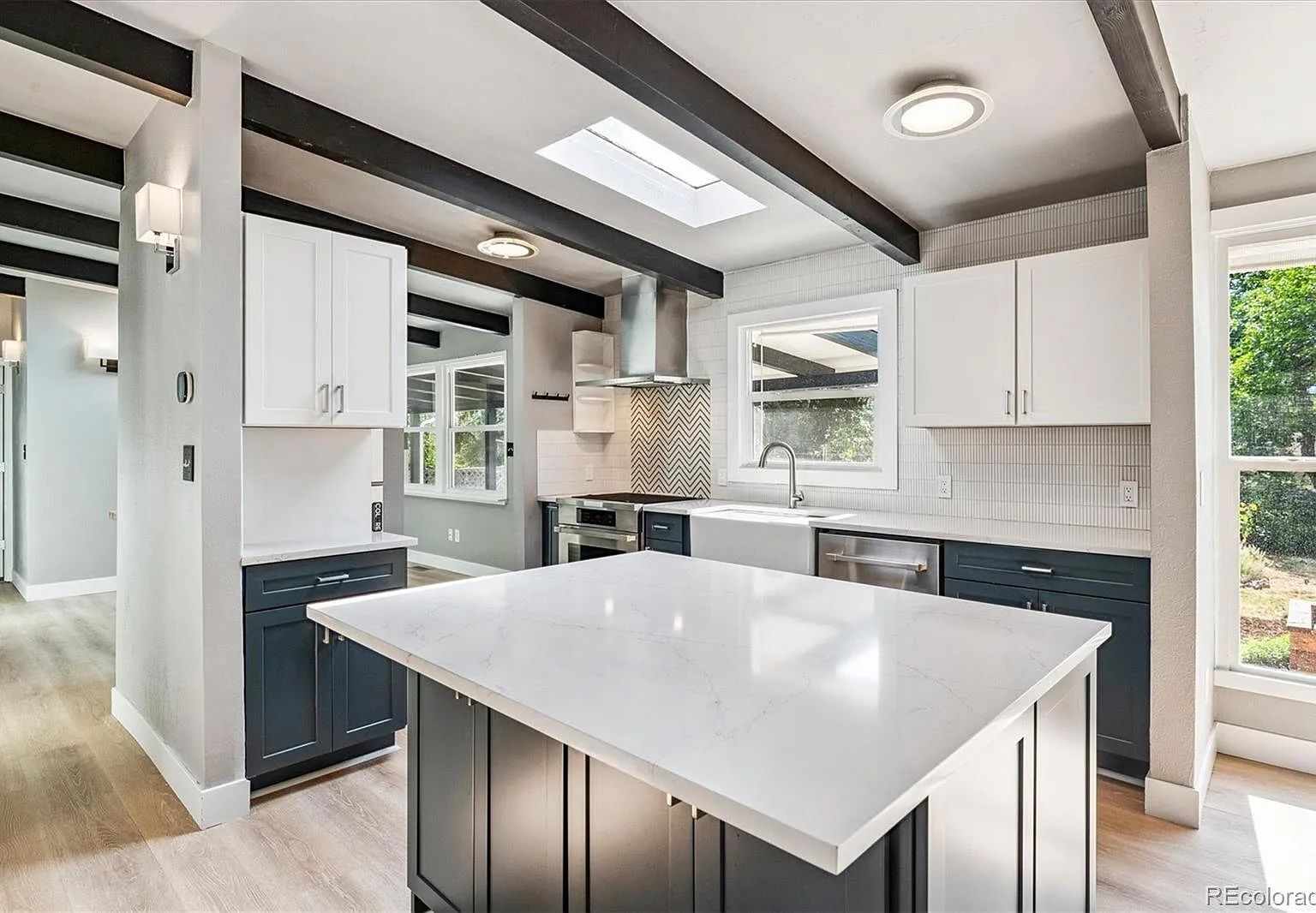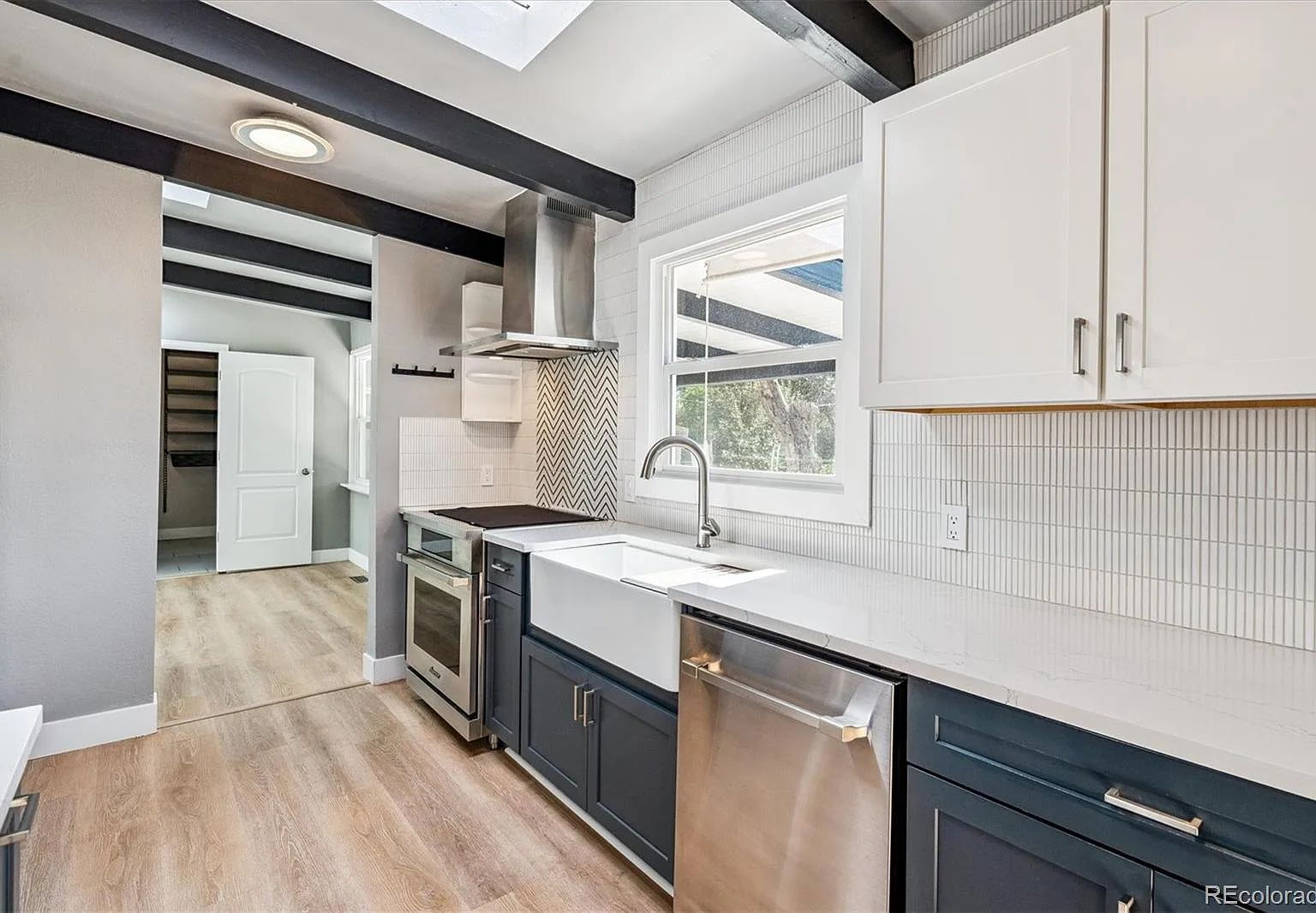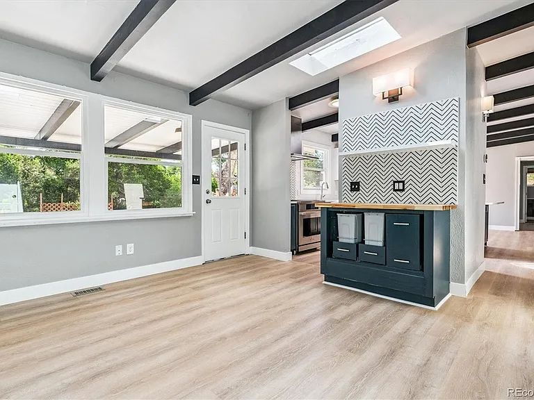 Beautifully updated mid-century modern home within walking distance to Historic Downtown Littleton and Bemis Library. True main-floor living with warm natural light, vaulted ceilings, exposed beams, and refinished hardwoods throughout.